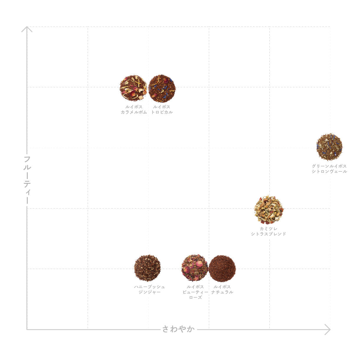 ルイボスティーをベースにローズヒップ、ハイビスカスとローズの花びらをふんだんに配合しました。